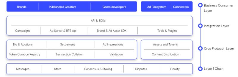 Cros 的 Layer 2 链将处理和执行与广告相关的交易,同时将其最新区块的汇总数据提交到主链。