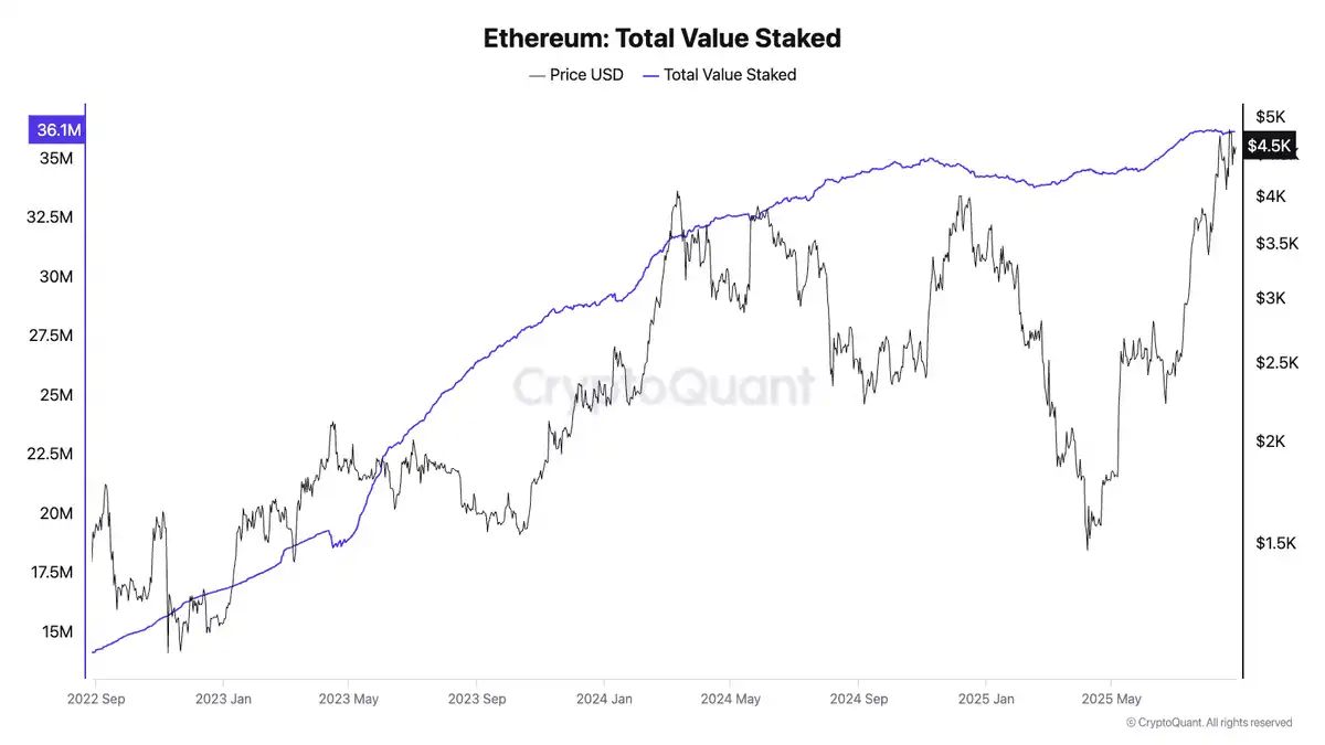 目前,已有约 3613.7 万枚 ETH 在质押中,接近目前总供应量的 30.1%,质押规模屡创新高。这些锁定的 ETH 有效减少了流通供给,从供需层面减少了抛压。