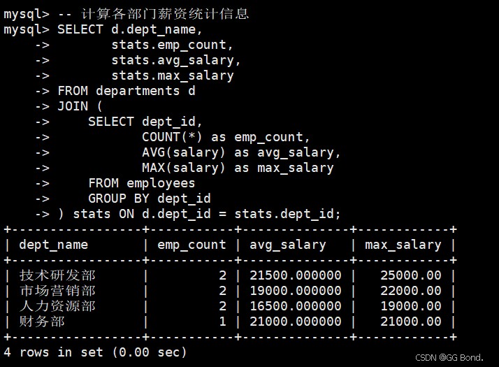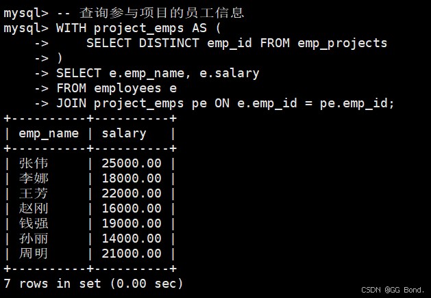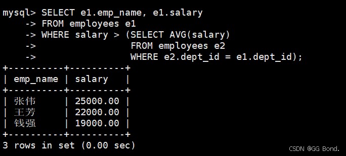 -- 找出每个部门薪资高于部门平均且参与项目的员工