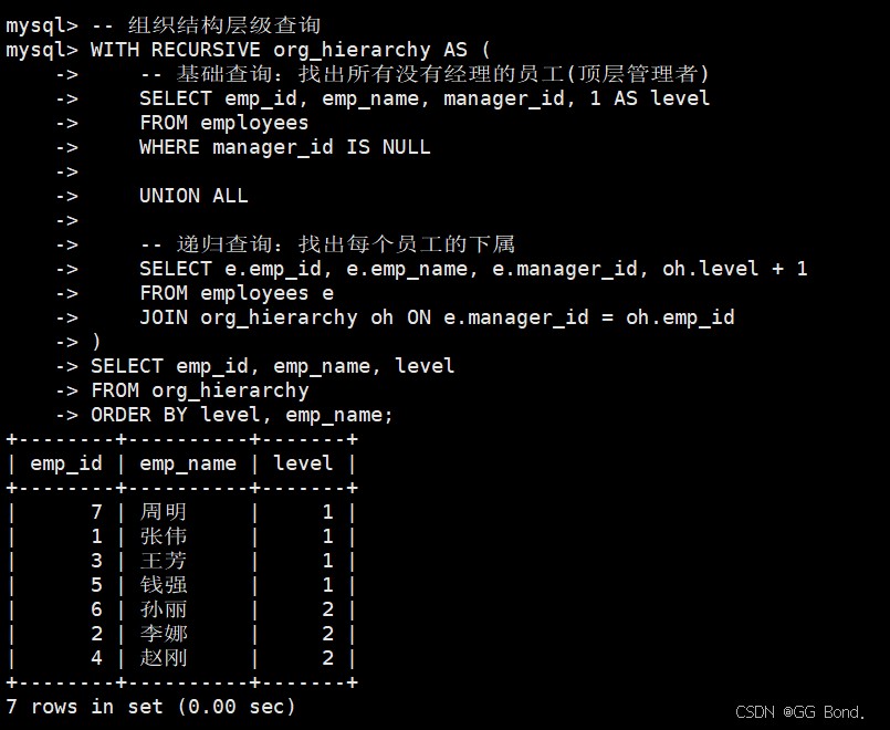 JOIN org_hierarchy oh ON e.manager_id = oh.emp_id