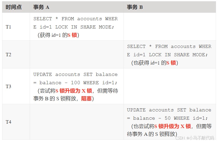 场景 1:共享锁升级导致的死锁