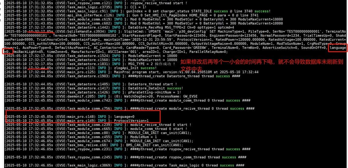 如果保存参数后,稍等一会(时间也不长)再下电,再上电验证,数据已经刷新到数据库文件中,已经保存成功了。
