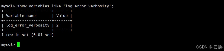 -- 查看当前日志级别 show global variables like "log_error_verbosity";