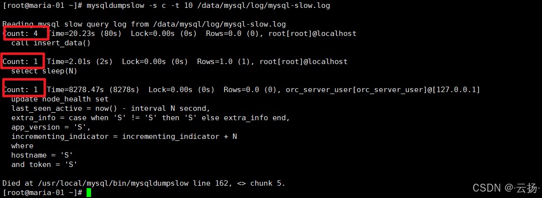 MySQL 自带的日志分析工具,可统计慢查询的频率、平均执行时间等: