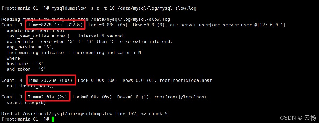 # 查看最新10条慢查询 tail -n 10 /data/mysql/log/mysql-slow.log # 搜索包含特定表的慢查询 grep 'user_info' /data/mysql/log/mysql-slow.log