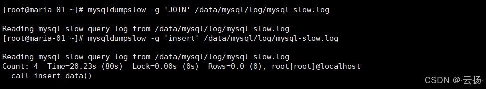 # 统计执行次数最多的前10条慢查询 mysqldumpslow -s c -t 10 /data/mysql/log/mysql-slow.log # 统计平均执行时间最长的前10条慢查询 mysqldumpslow -s t -t 10 /data/mysql/log/mysql-slow.log # 筛选包含 JOIN 的慢查询 mysqldumpslow -g 'JOIN' /data/mysql/log/mysql-slow.log