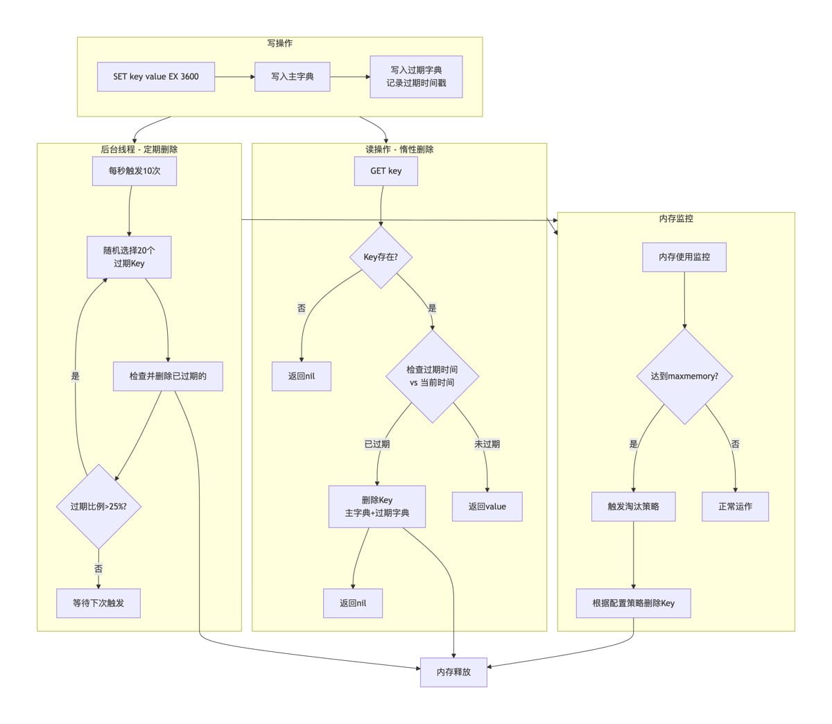 这种设计在 CPU 使用率、内存效率和实现复杂性之间取得了良好的平衡,使得 Redis 能够高效处理大量带有过期时间的 Key。