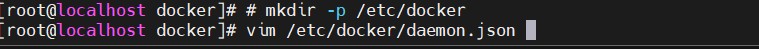 mkdir -p /etc/docker //创建 vim /etc/docker/daemon.json //修改