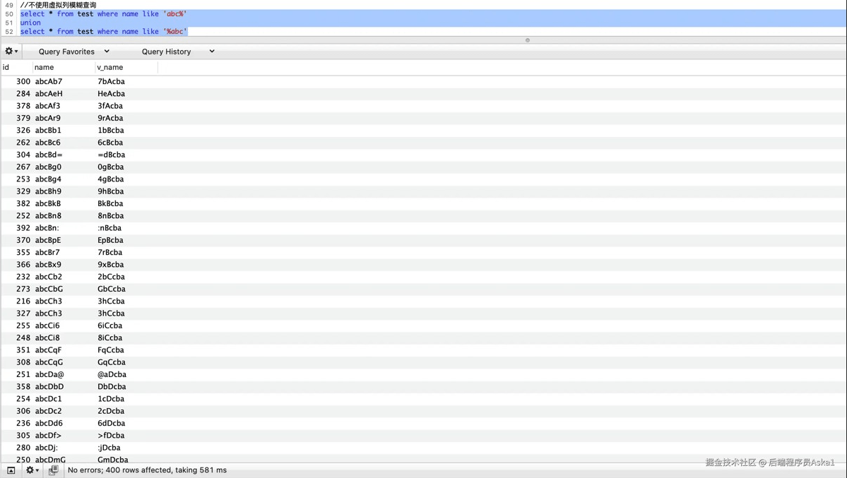 /* 不使用虚拟列模糊查询 */