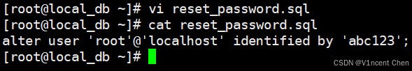 创建一个文本文件,名称随意(这里是reset_password.sql),里面写上更改root密码的SQL: