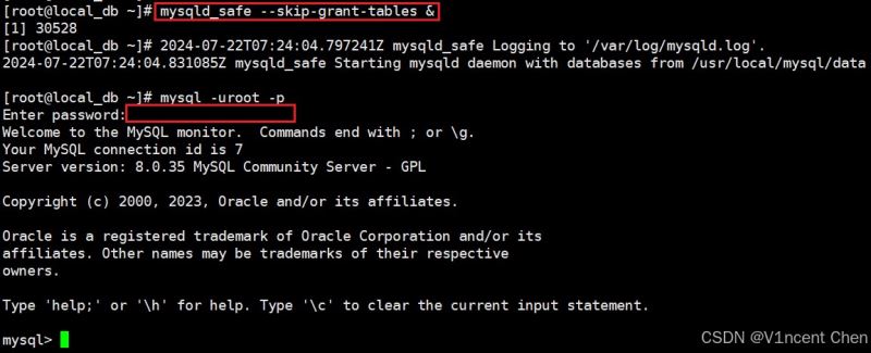 使用skip-grant-tables参数启动数据库,并使用root用户登陆: