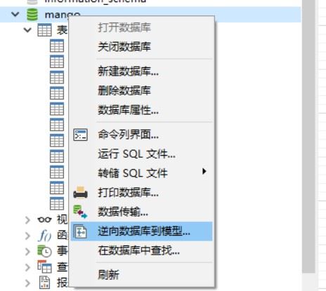 - 数据库名字上右键,可以看到逆向数据库到模型