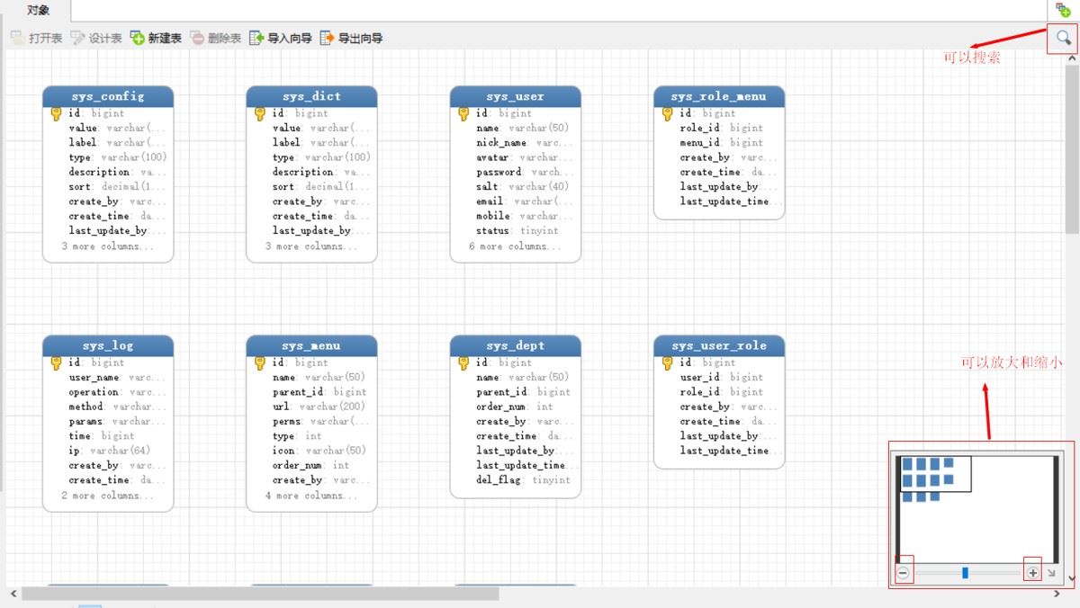 - 点击ER图表,就可以看到数据库的ER图