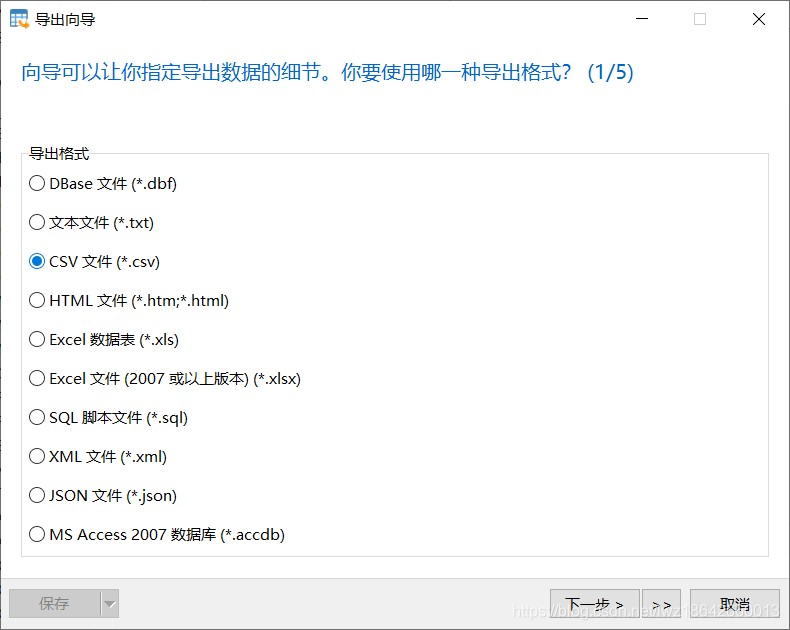 1.选择对应的表,点击导出向导,选择csv