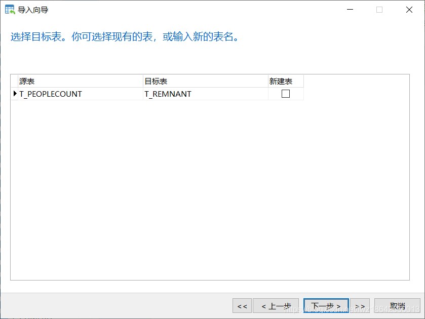 5.选择目标表,并可根据需要设定是否需要新建表