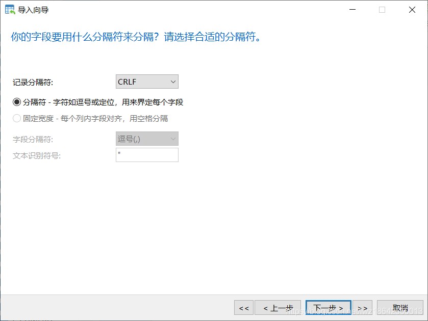 3.选择分隔符,默认即可,但应是与导出时的分隔符相同