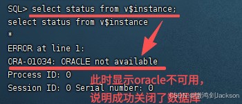 关闭流程:执行shutdown immediate命令,关闭Oracle数据库。