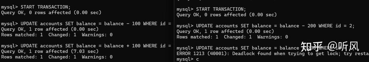 - 自动检测与回滚:依赖 MySQL 的死锁检测机制。