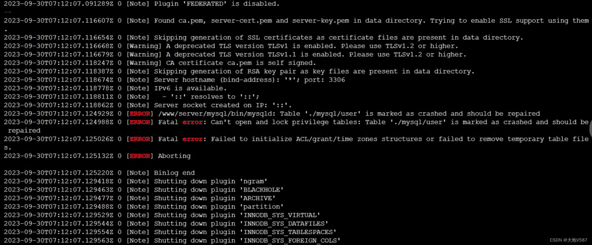 案例四、 错误提示:/bin/mysqld: Table ‘./mysql/user’ is marked as crashed and should be repaired
