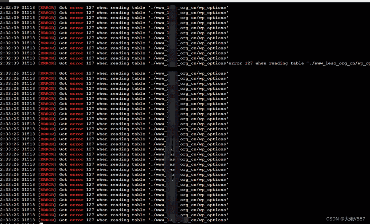 案例五、错误信息:[ ERROR]Got error 127 when reading table …