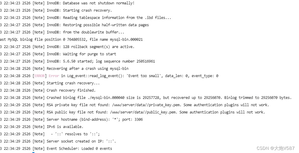 - 二进制日志损坏,导致mysql无法读取二进制日志