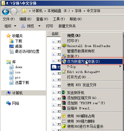 在Windows7中,安装金梅字体的方法相比在xp中有了一些改变,不过操作显得更为简便,分为直接复制法、右键金梅字体文件安装、右键作为快捷方式安装金梅字体三种方法,其中直接复制法和xp中一样,这里就不在介绍了,下面给大家介绍下右键字体文件安装、右键作为快捷方式安装这两种方法。