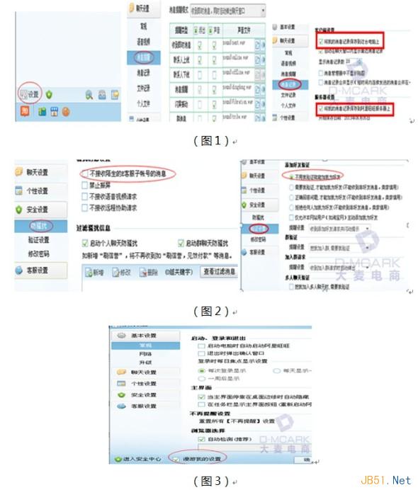 B. 安全设置中的防骚扰记得不要勾选不接收陌生人子账号的消息这个选项,因为有些卖家会用自己店铺的子账号来购买东西,这也是一种客源。而验证设置中建议勾选不用验证就可以加为好友这个选项,这样利于客户直接加您为好友,方便下次光临与我们沟通(如图2)。最后全部设置好后记得要选择漫游,这样在不同的电脑上登录才可以保持一样的设置(如图3)。