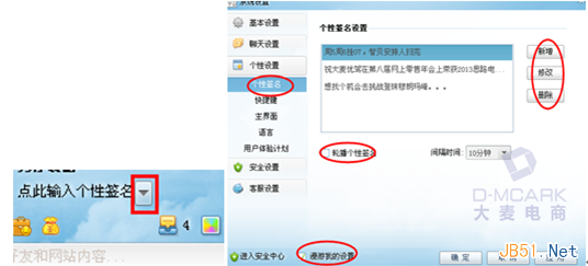 A.内容:个性签名是传播给客户的首条信息,所以内容很重要,必须给客户留下深刻的印象。一般可以宣传店铺现有活动,预告店铺参加的活动等。例如:“亲,本店于5月20号举办优惠活动,满49全店包邮,先抢先得!”内容简洁、清晰,让客户第一时间了解到您店铺的信息,也可以为接下来的谈单做铺垫。