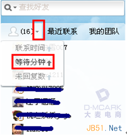 在旺旺联系中的的客户左上角有个设置排序的,可以看到有三种选择方式:按照联系时间排序。按照等待分钟排序。按照未回复数排序,可以进行选择其中一种方式来排序。