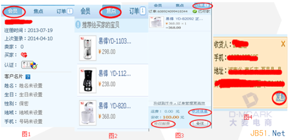 C. 点击订单可查看买家是否有购买宝贝,拍下没付款之前可以修改邮费,付款后可以查看收货信息,可以备注信息 (如图3);