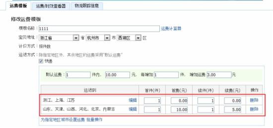 但其实,卖家不必如此大费周章地解释,现在的运费模板已经可以分区域设置包邮。例如亲的宝贝只支持江浙沪包邮的,即可以单独勾选江浙沪是0运费,而其他地方则是正常的运费,在选择时也非常清晰。如果你还不知道这个功能,就可以马上动手试一试。具体设置如下图:
