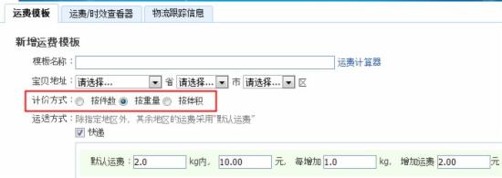 从这个设置页面我们可以看到,在设置首重时也不再像原来那样只能按单件设置首重了,卖家可以自由选择多少件或者多少KG来设置售后。如果你是小饰品的卖家,很多发饰很小,按单件设置首重有些不合理,那你完全可以按实际件数来设置一个相对合理的首重。
