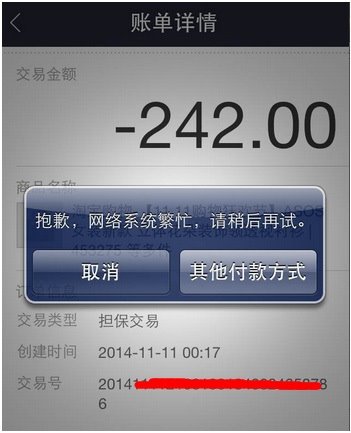 据亿邦动力网了解,去年双11开始后,由于订单量瞬间激增,就曾爆发多家网银无法通过支付宝支付的情况。