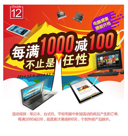 京东12.12电脑整机优惠活动 满1000减100