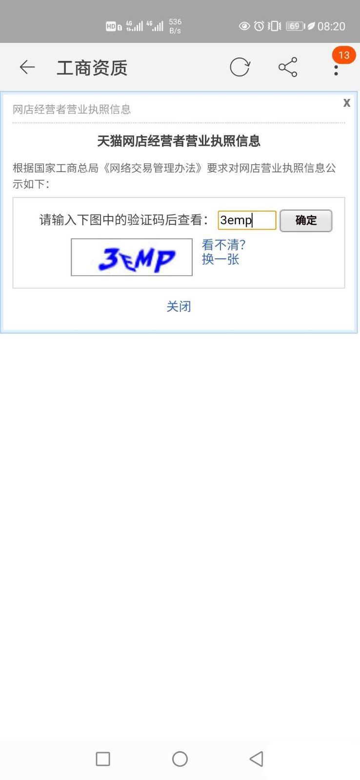 接下来输入【验证码】,就可以看到对应的营业执照。