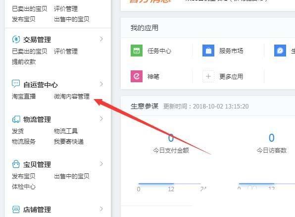 首先,打开淘宝千牛工作台,在左侧导航中找到如图红箭头所示按钮点击。