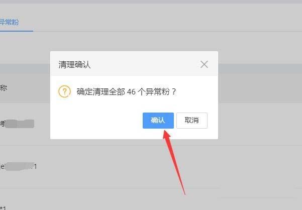 如果要清理异常粉丝,点击右侧的清理按钮。弹出清理确认,点击确认。弹出清理任务执行中,点击确认。