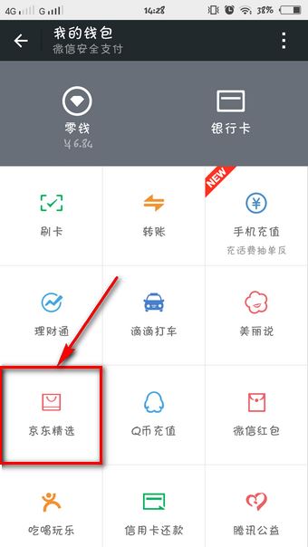 2、在微信钱包的界面打开“京东多选”