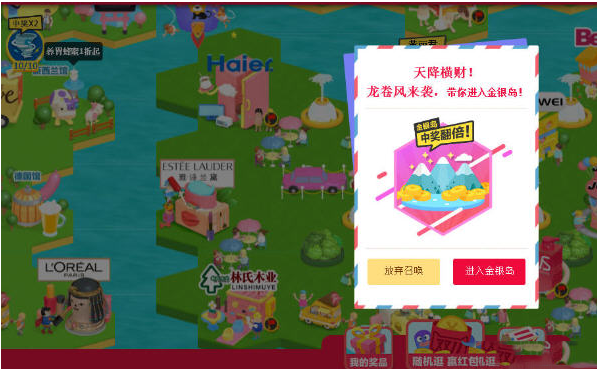 2、点击狂欢城内出现的品牌小岛红包;