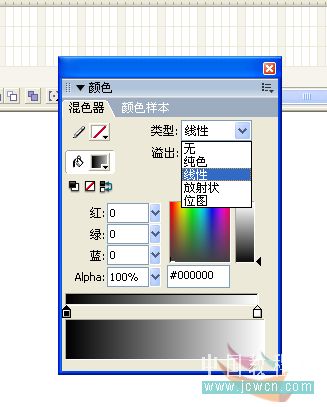 混色器,这个其实也没什么好说的~大家应该都会用。不过一些刚开始接触的朋友有时候会说找不到线性渐变在哪里~那么不知道的朋友看下图啦,只要点下那个下拉列表就有啦。