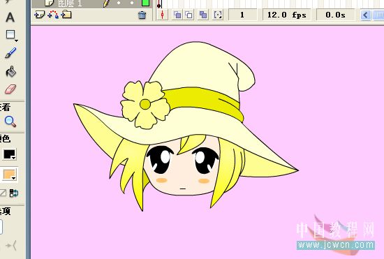 打开Flash,新建一个空白的Flash文档。首先来画帽子~选择线