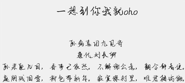 一想到你我就oho是一款十分好用,且非常漂亮的艺术字体,同时也是由文道字库倾情发布,字体在字与字之间有着一种行云流水的畅意,无论是笔法的撇捺伸张还是字形的灵动飘逸,都能给用户极为舒适的感觉,适应于报纸和杂志和书籍中常用字体, 海报、个性促进品牌标志设计、文本装潢、信息展示、篆刻制模英文、数据制作、装潢设计、视觉设计、字帖等一切合法应用场景,有喜欢的朋友可免费下载收藏。