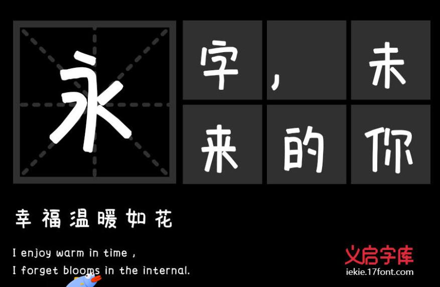 义启卡哇伊乃一款不错的艺术字体,由义启字库出品,字体笔触适中,书写端正,适合应用于艺术设计、平面宣传设计、网页设计,书法字帖等领域,需要的朋友可以前来本站下载。