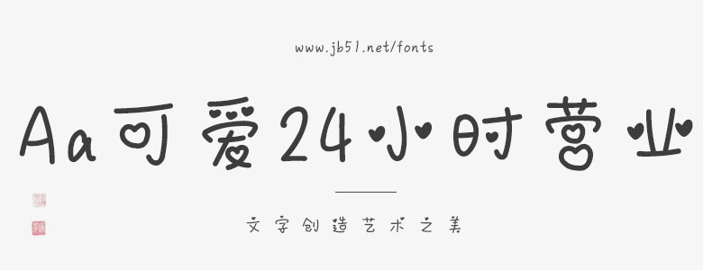 Aa可爱24小时营业是一款赏心悦目的艺术字体,字体线条粗细适中,笔画随性,结构肆意洒脱,具有很好的视觉感,适用于标题,书刊印刷,广告包装设计等场景,需要的朋友可以前来本站下载。