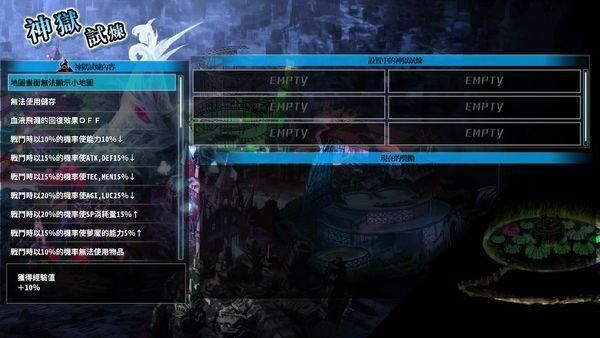 DRPG的乐趣在于培养角色,强化收集装备。在升级学技能方面,《神狱塔:断罪玛丽2》属于很传统的升级转职学习技能,这方面问题不大。但在装备获得,强化,以及其他辅助系统方面,构想就不是很成熟。在这一代中,好使的装备,基本上是通过血晶种植长出来的。这个的收获具有随机性,但比同期商店,探索,打怪掉落获得的要强得多。这导致商店武器和强化系统就很鸡肋。一路升级获得装备的过程,成就感和喜悦不是很足。种血获得的能力,缺少管理功能,并且强度很低,在战斗发展很极端的本作中,对于角色培养的意义不明显。