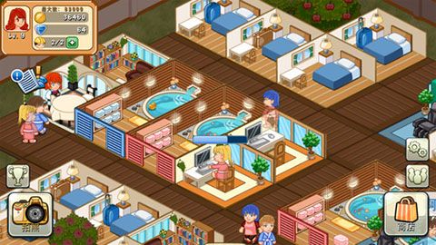 3、比如客人消费后显示的金币点击后就可以收取,或者如果有足够金币后,在前台就会出现一个向上的箭头点击后就可以升级,或者点击不同的建筑设施,可以对其进入旋转,升级等等,非常简单。