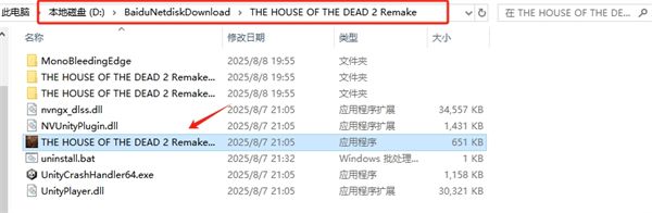 1、找到名为“THE HOUSE OF THE DEAD 2 Remake.exe”的游戏启动文件,双击它就能开启你的恐怖射击之旅;