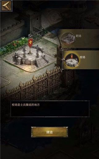 7、继续建造建筑,校场是士兵集结的地方,点击前往建造,另外升级校场可以提高征数量上限,如图所示