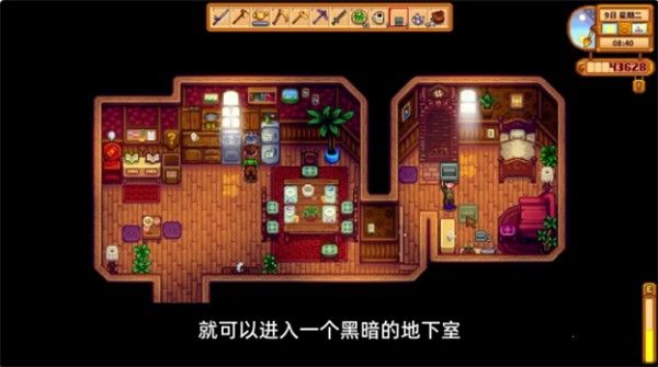 1、我们先带好楼梯去镇长家,进他的房间,将楼梯放在地上,即可进入漆黑的地下室。