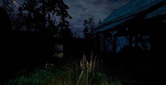 说明分布在除草剂房(1个)、中间房子(一楼二楼三楼都有,建议仔细一点,别漏掉了)、谷仓(三楼有7个)这三个地方。关闭手电筒后有白边或红边的物体是可进行交互的物体,所以可以利用这个办法快速寻找说明。
